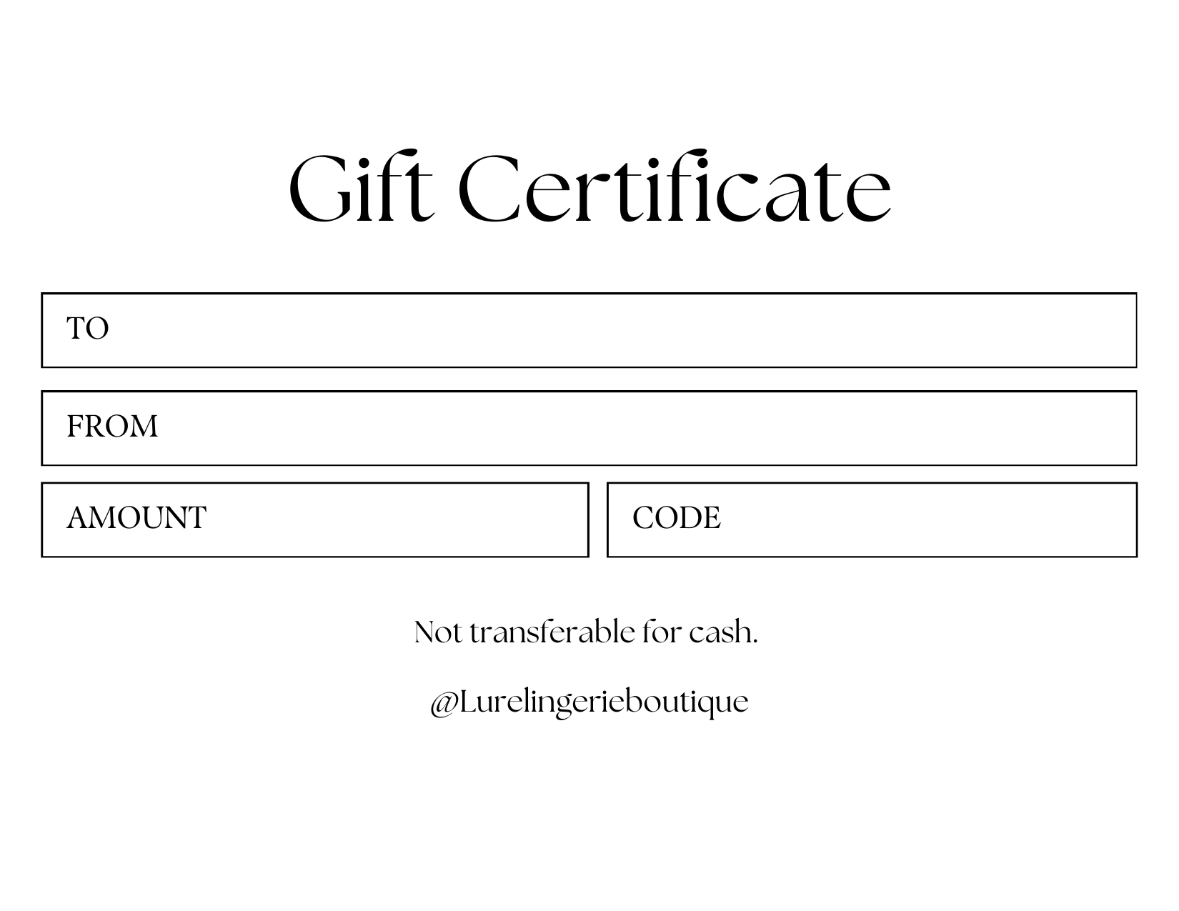 *Your use of this gift card constitutes acceptance of these terms: This gift card may be applied toward any purchase made with Lure Lingerie LLC. This gift card is not exchangeable for cash or replaced if lost or stolen.